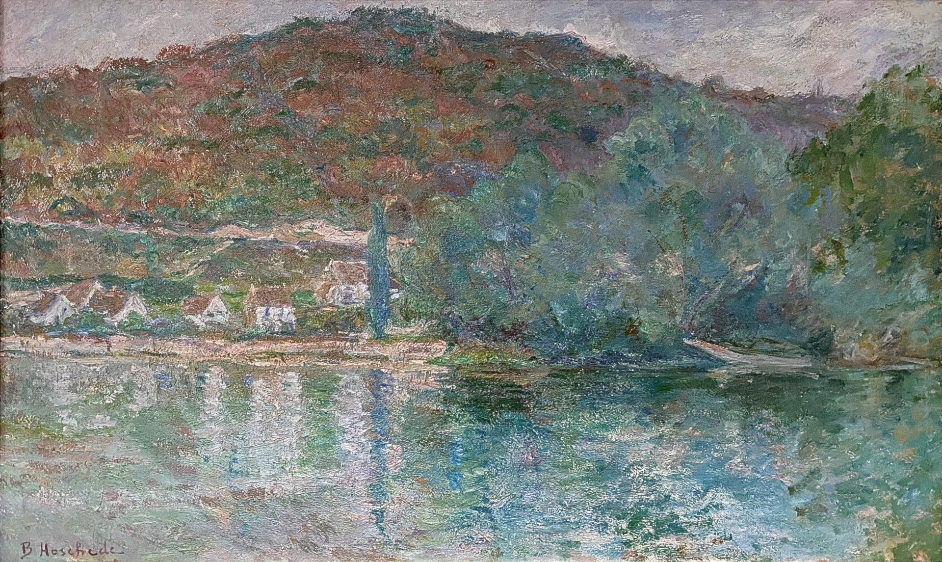 "Bord de Seine" Huile sur toile, 48 x 81 cmSigné en bas à gauche "Blanche Hoschedé"
